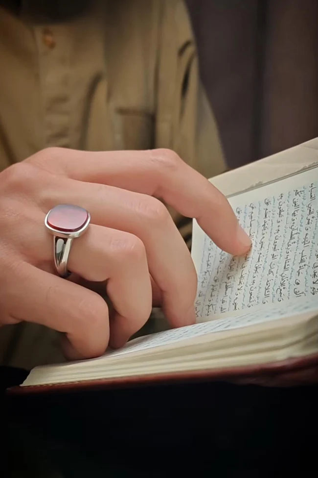 Inspired by the revered Sulemani Aqeeq, cherished in Pakistani culture for its protective and grounding powers, this ring is perfect for those who live with purpose and wear their energy with pride.